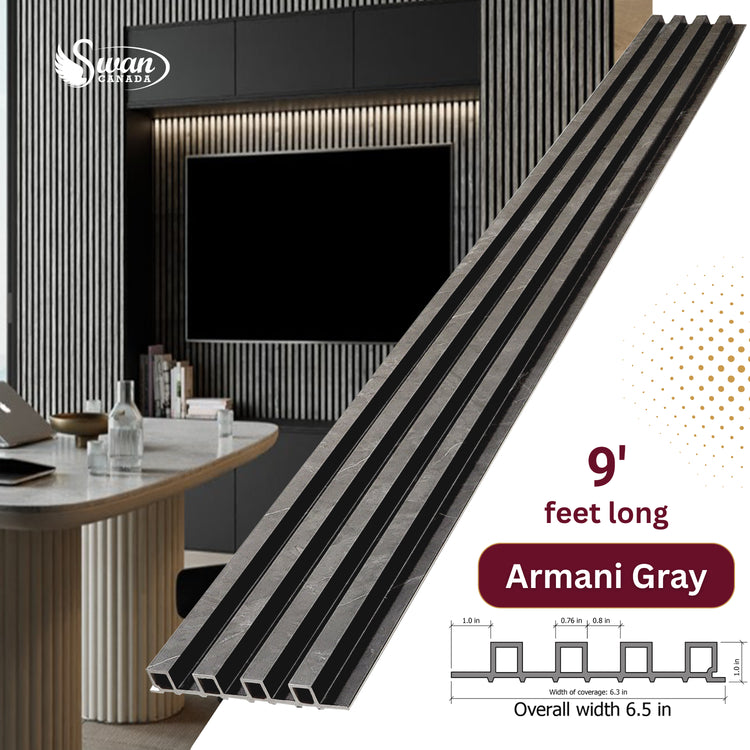 WPC Fluted Panels, Armani Gray, 10 Panels x 9 feet long