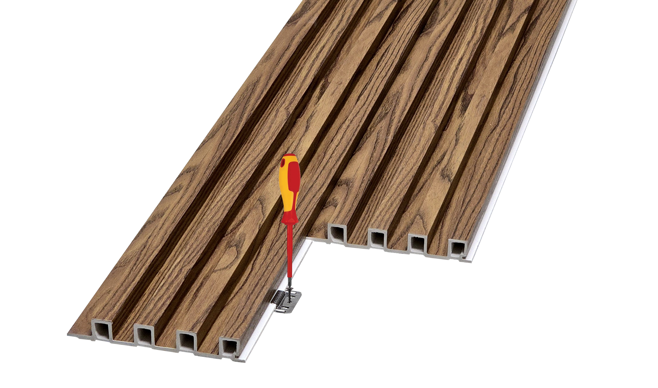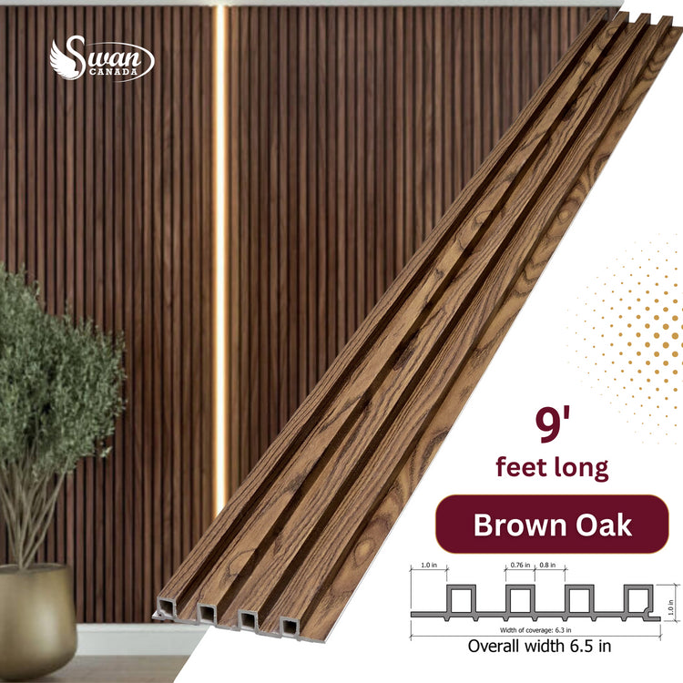 WPC Fluted Panels, Brown Oak 10 Panels x 9 feet long