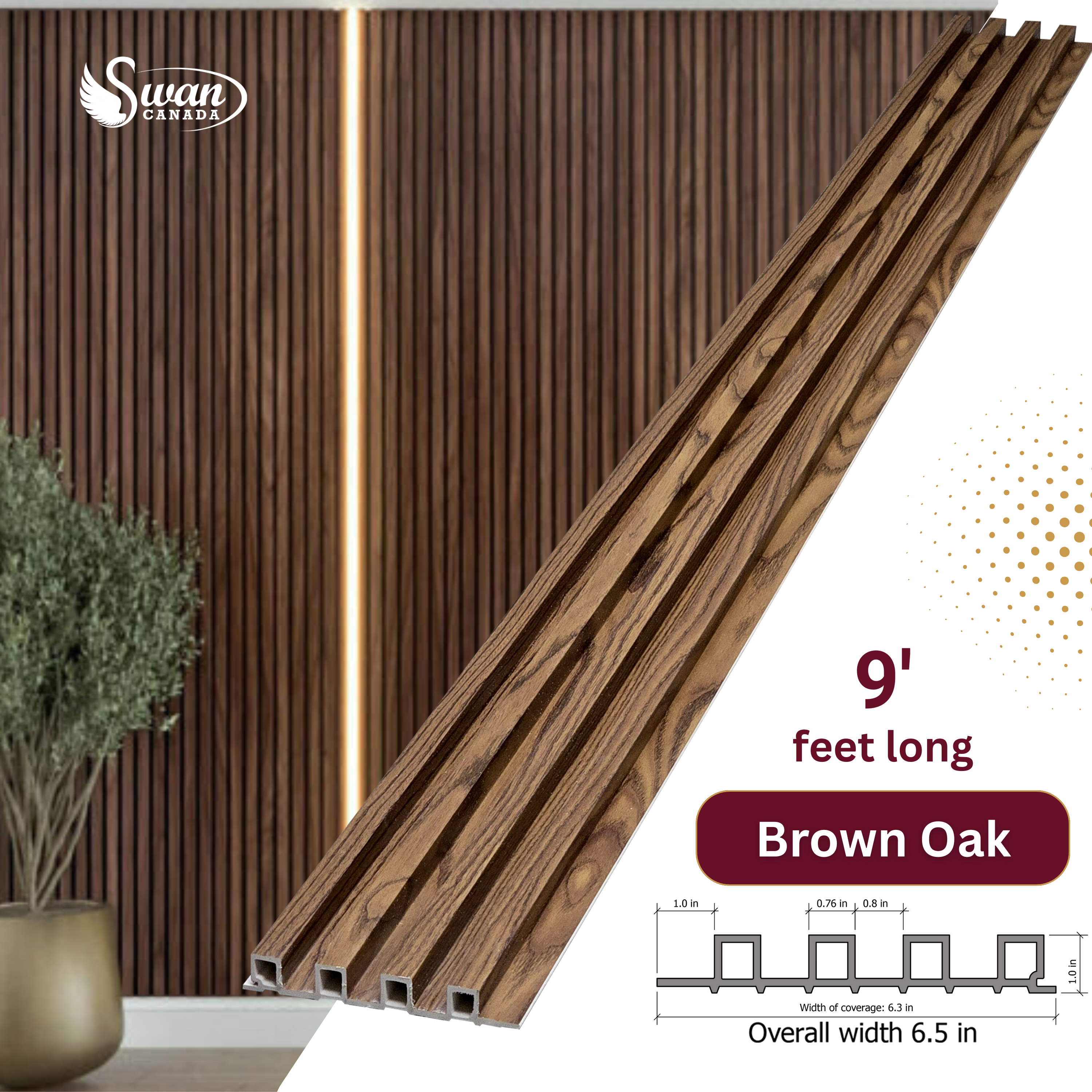 Swan WPC stands for Wood Plastic Composite — a mix of high wood fibers and high-quality composite. This material combines the look of wood with the strength and durability of the composite, making it ideal for modern interior wall applications.