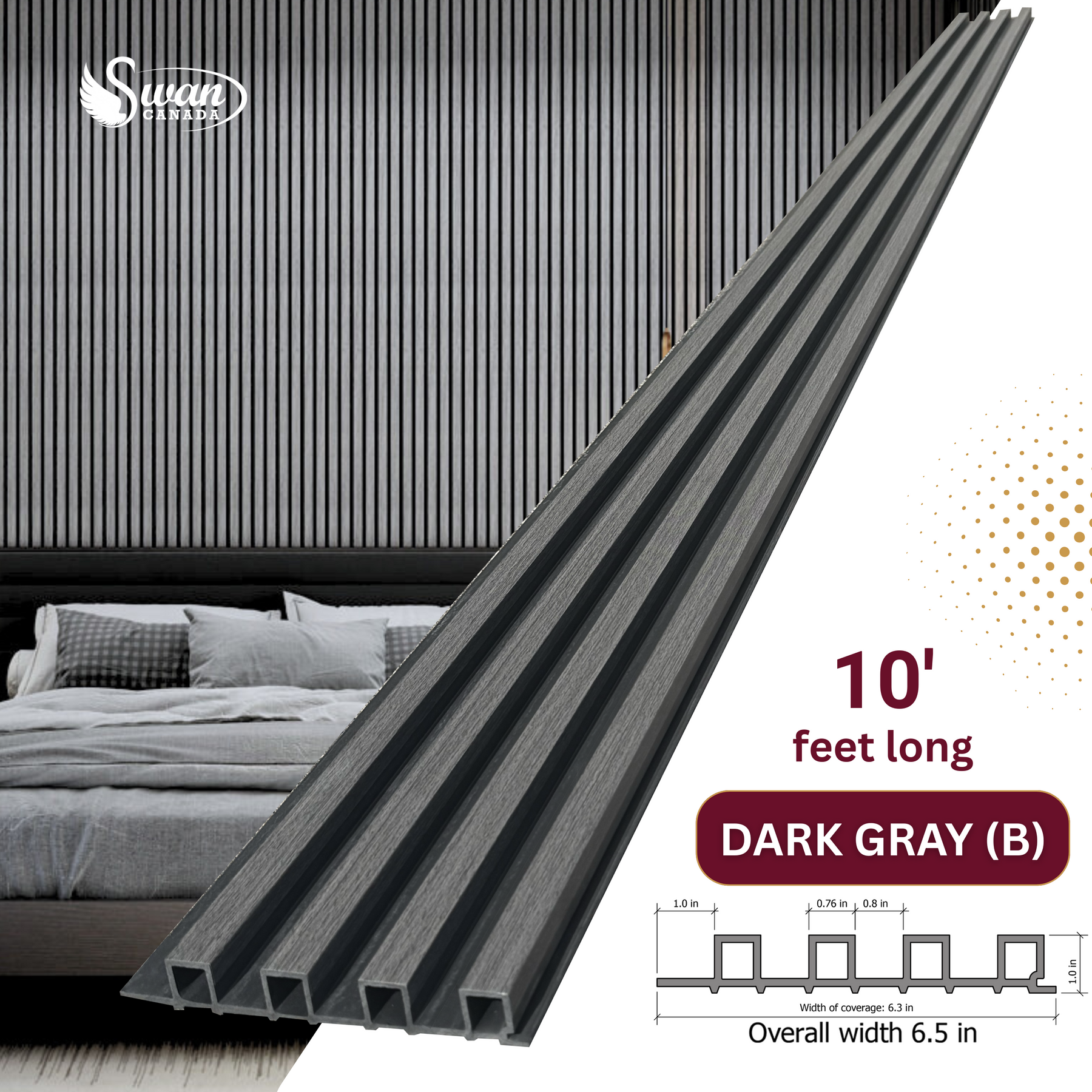 Swan WPC stands for Wood Plastic Composite — a mix of high wood fibers and high-quality composite. This material combines the look of wood with the strength and durability of the composite, making it ideal for modern interior wall applications.
