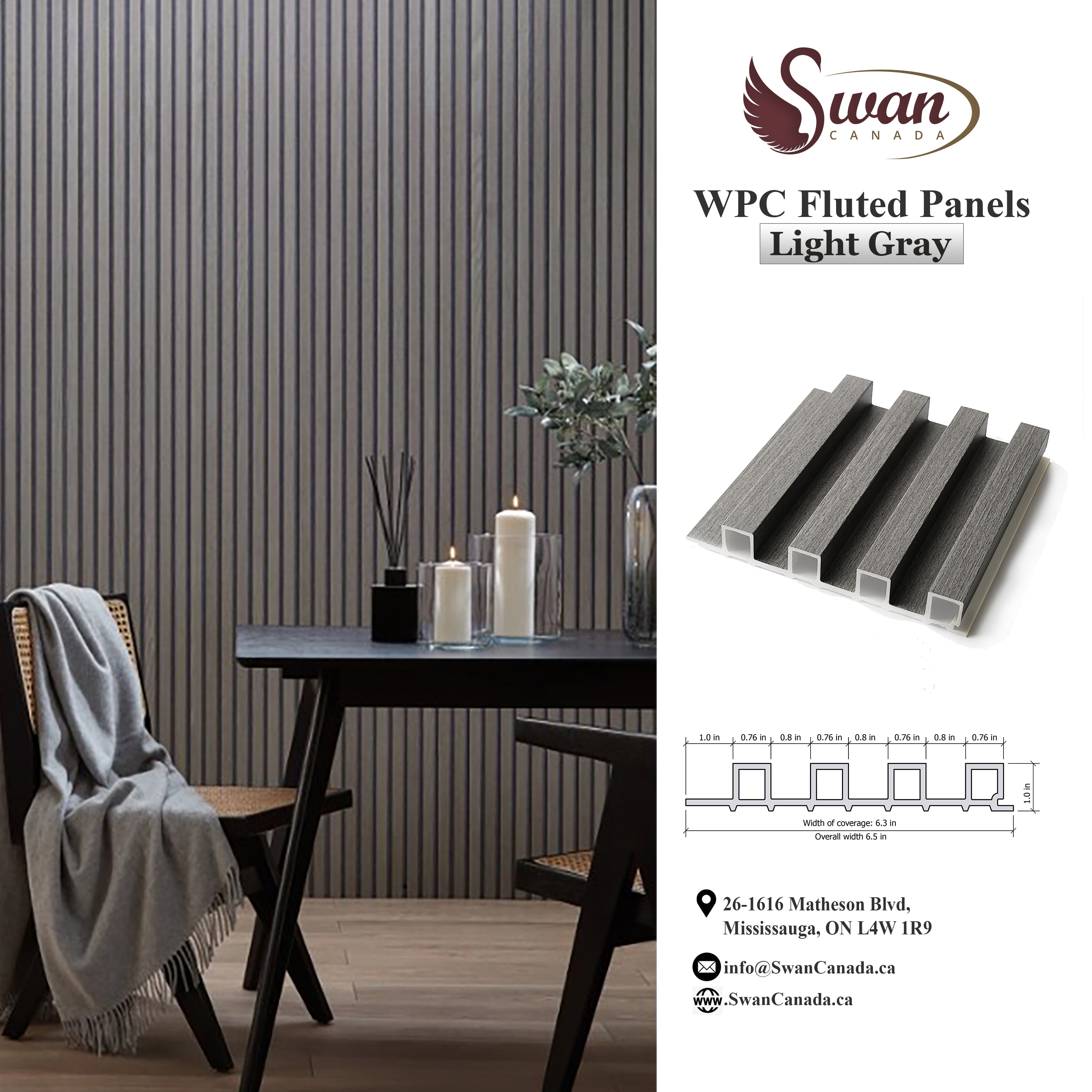 Swan WPC fluted panels are a superior alternative to traditional wood panels, offering a beautiful and versatile appearance that complements all types of interiors and furniture.They are eco-friendly. These panels provide excellent insulation and soundproofing, enhancing comfort in any space. With a lifespan of up to 25 years, they are highly durable, waterproof, mold-resistant, and require minimal maintenance—just occasional cleaning. Ideal for both decorative and functional purposes, Swan WPC fluted panels combine timeless style with modern performance, making them a smart and sustainable choice for any wall design.