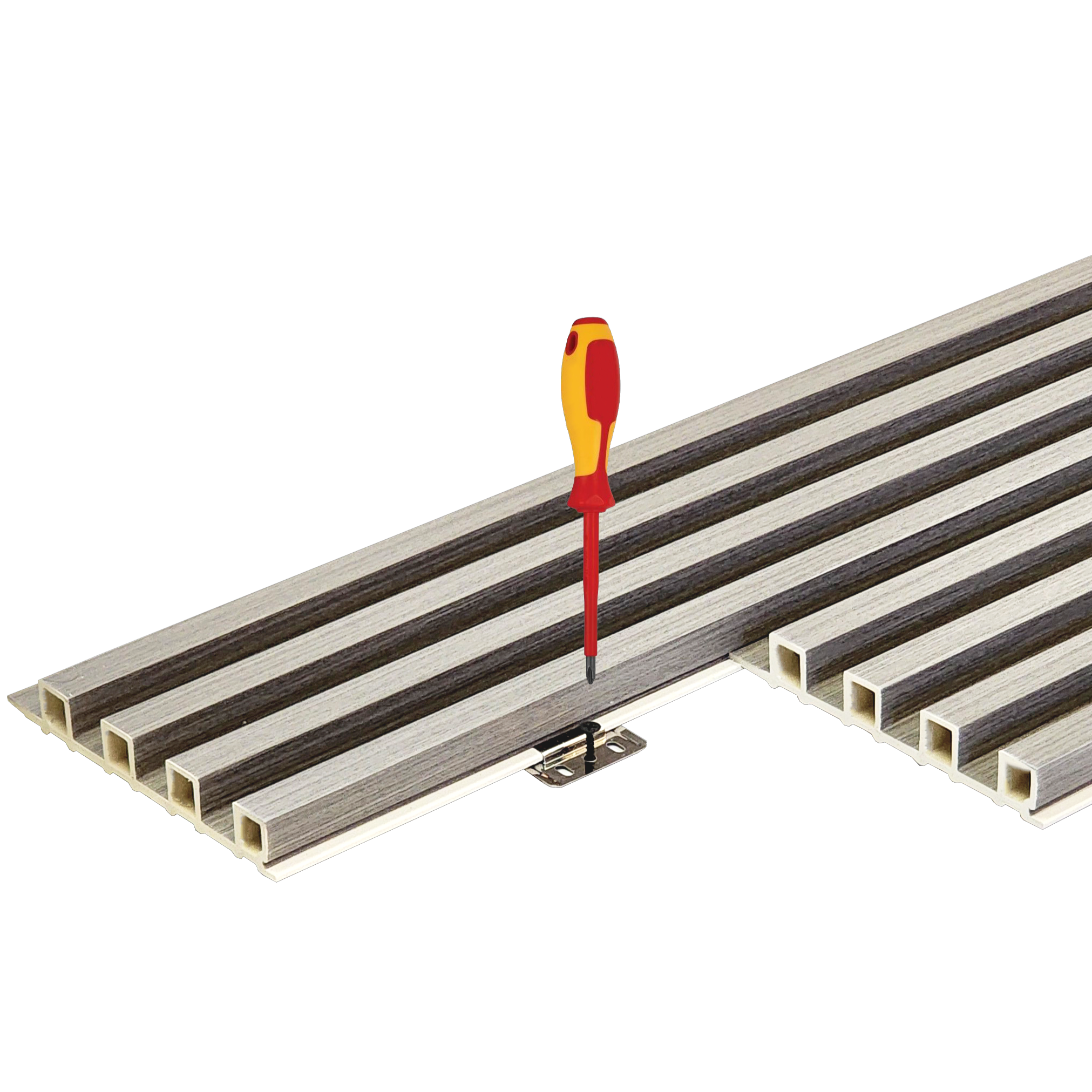 The Swan WPC Box comes with free installation metal clips, additional accessories are optional add-ons depending on your wall design. We offer matching trims, corner pieces, installation clips, and screws to ensure a clean and professional finish. Visit our accessories section or showroom for details.