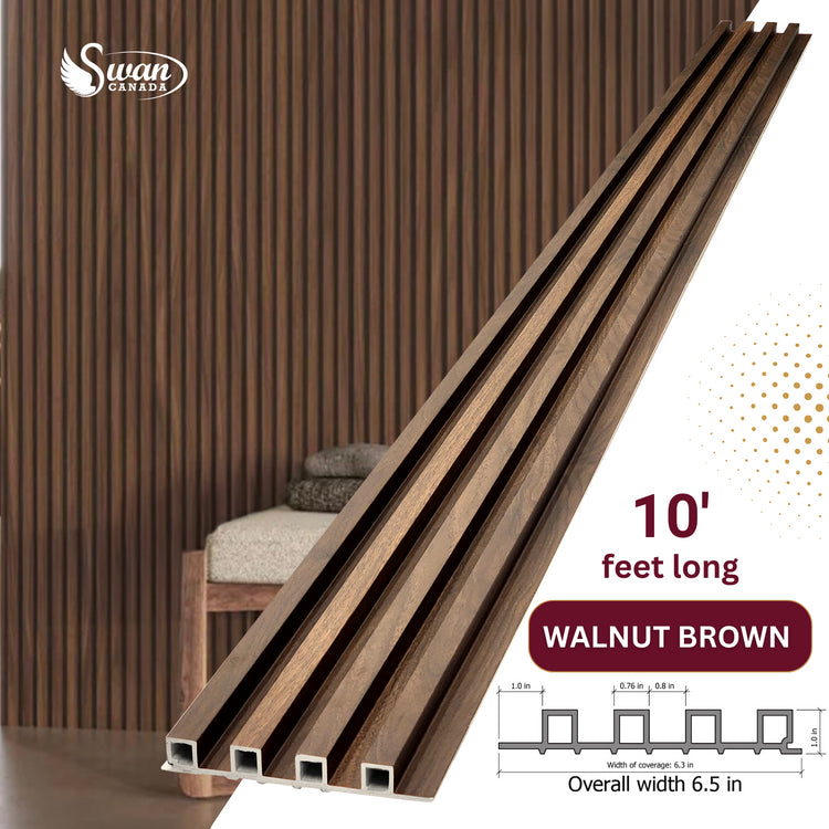 WPC Fluted Panels, Walnut Brown, 10 Panels x 10 feet long.