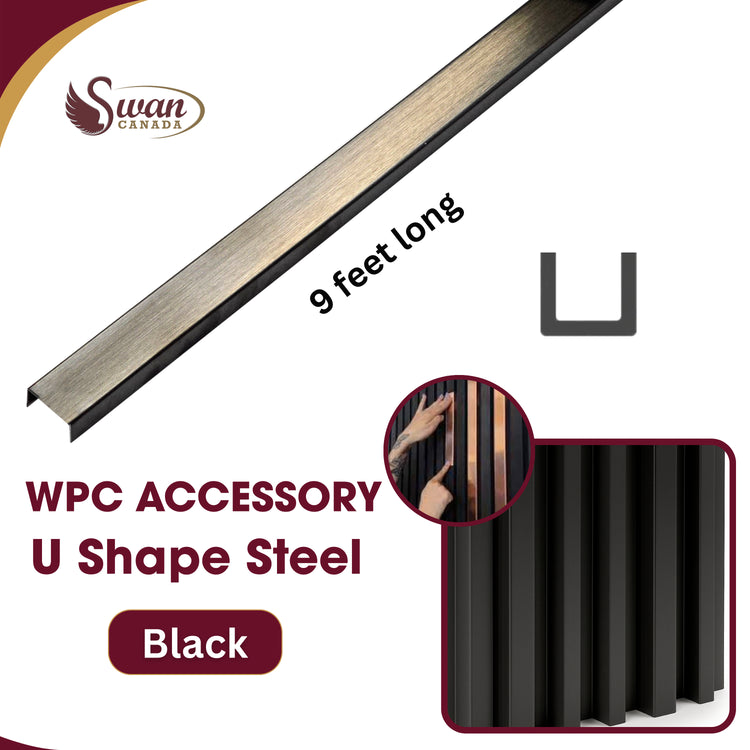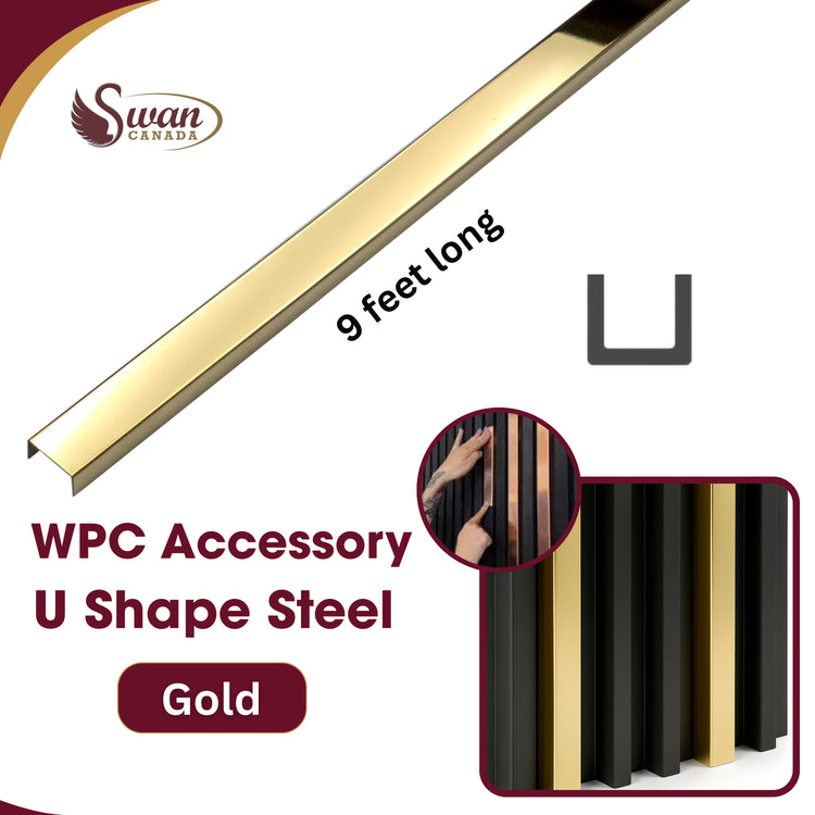 Our WPC U-Shape Stainless Steel Trim (9 feet long) is the ideal addon accessory for enhancing the appearance of WPC fluted panels. Designed to fit directly over the flutes, this trim adds a luxurious, mirror-like accent to your wall cladding, perfect for both indoor and outdoor applications.