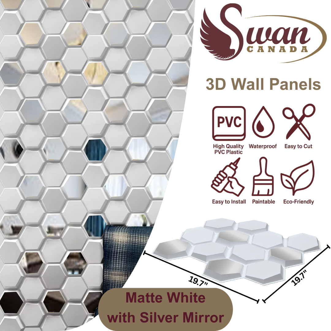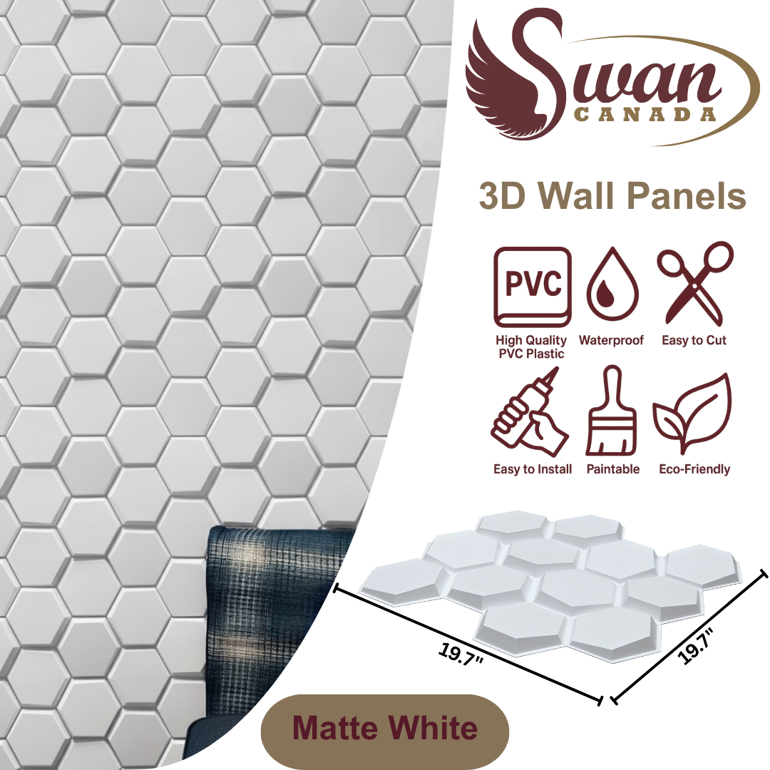 3D Wall Panels, Matte White Hexagon, 19.7" x 19.7"