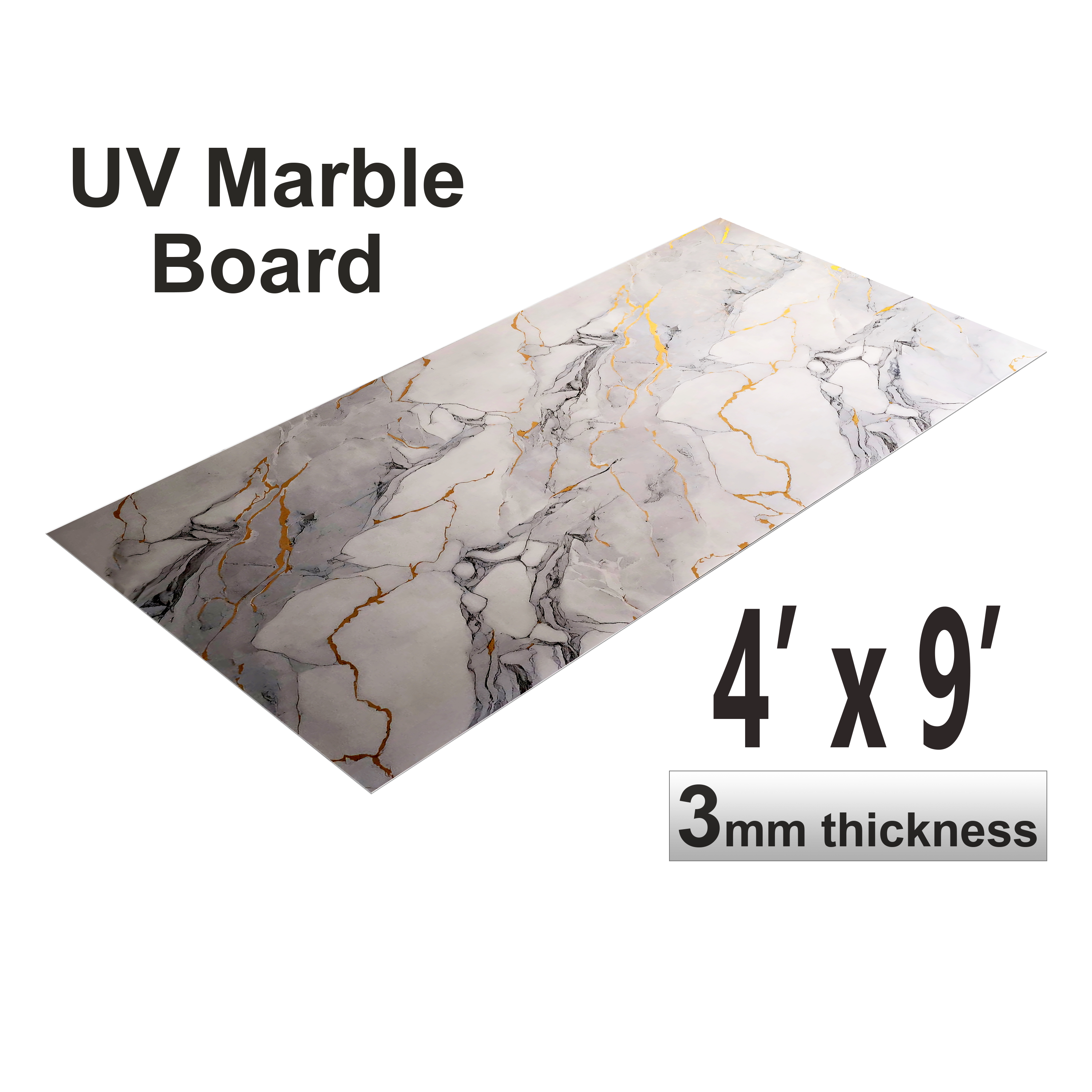 UV Marble Sheets are made from a high-quality composite material, including a durable PVC base and a UV-resistant protective coating. This makes them a lightweight, waterproof, and cost-effective alternative to real marble.