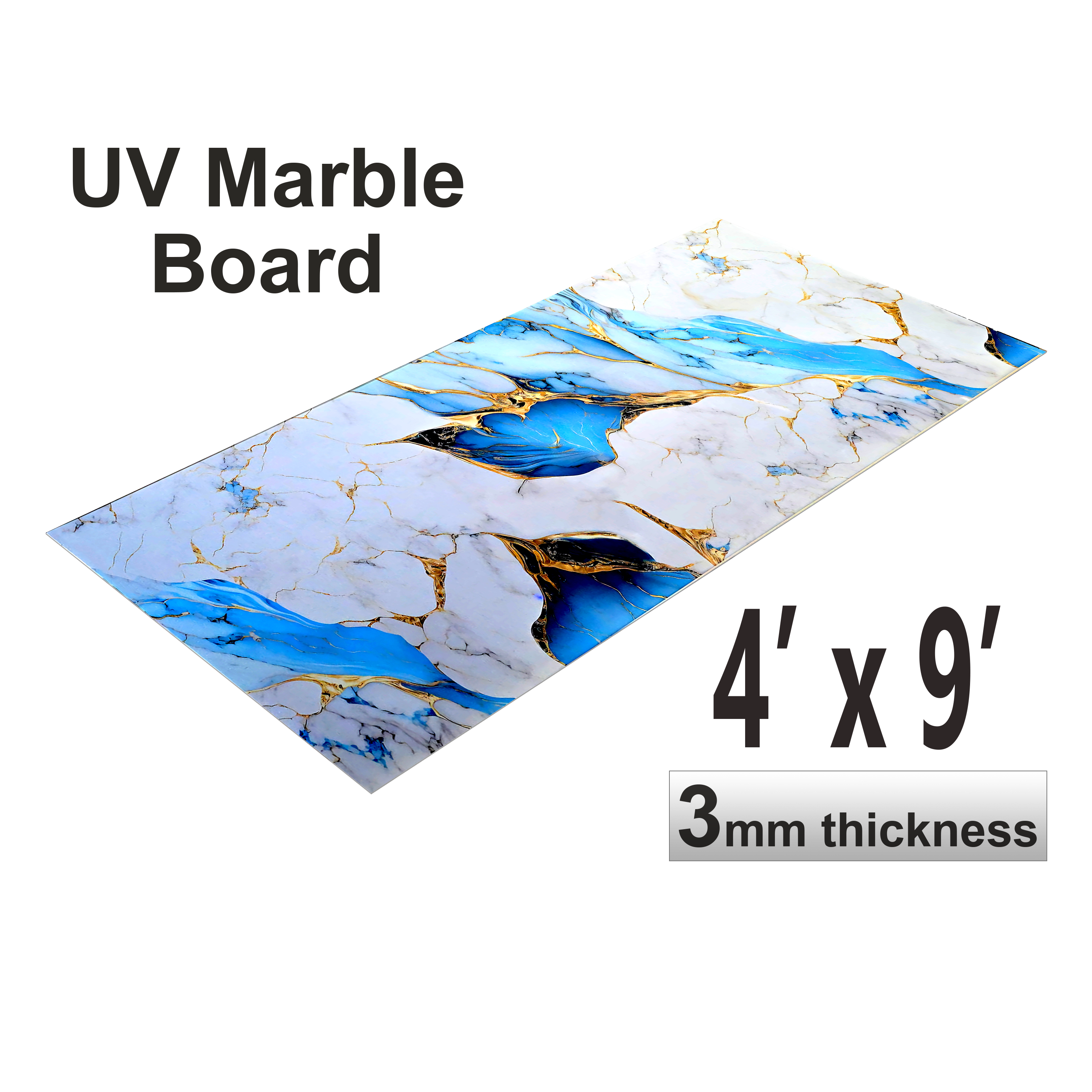 UV Marble Sheets are made from a high-quality composite material, including a durable PVC base and a UV-resistant protective coating. This makes them a lightweight, waterproof, and cost-effective alternative to real marble.