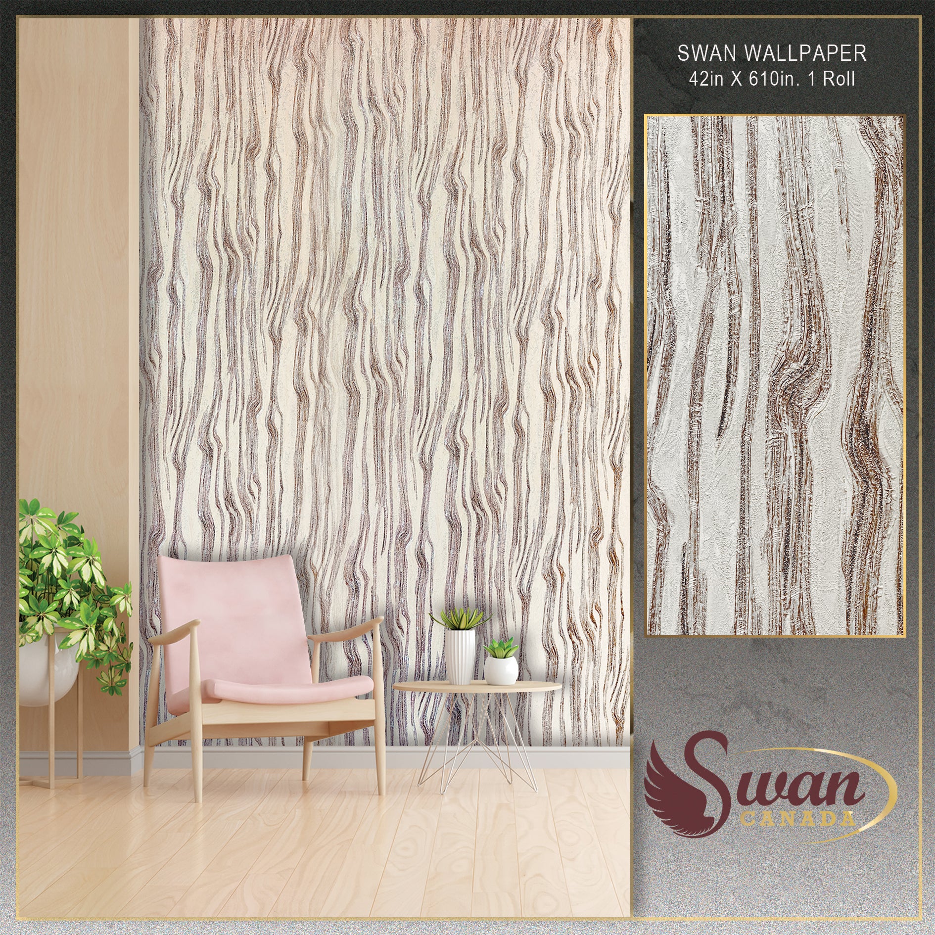 Papier peint Cygne, vague bronze, 42 po x 610 po. 1 rouleau