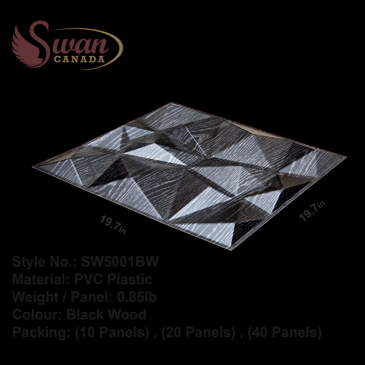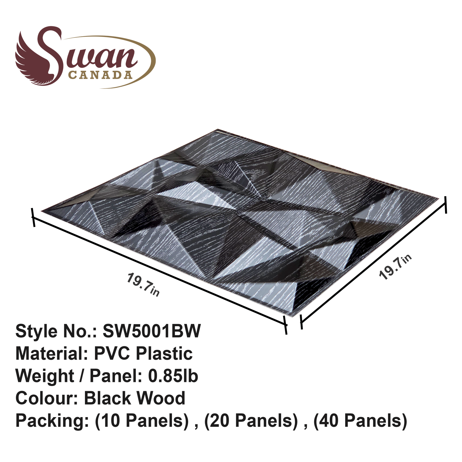 3D Wall Panels, Black Wooden, 19.7" x 19.7"