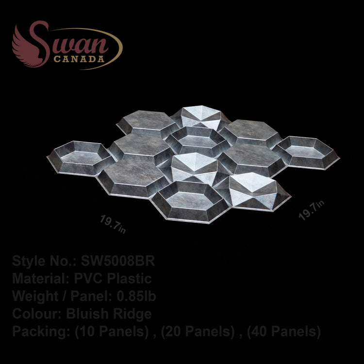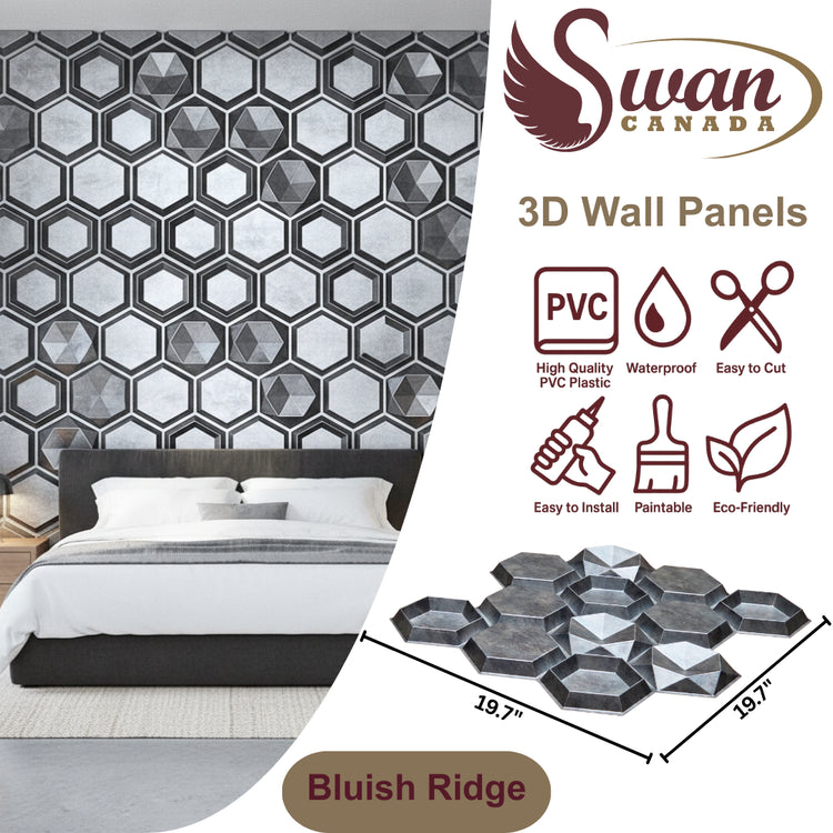 3D Wall Panels, Bluish Ridge, 19.7" x 19.7"