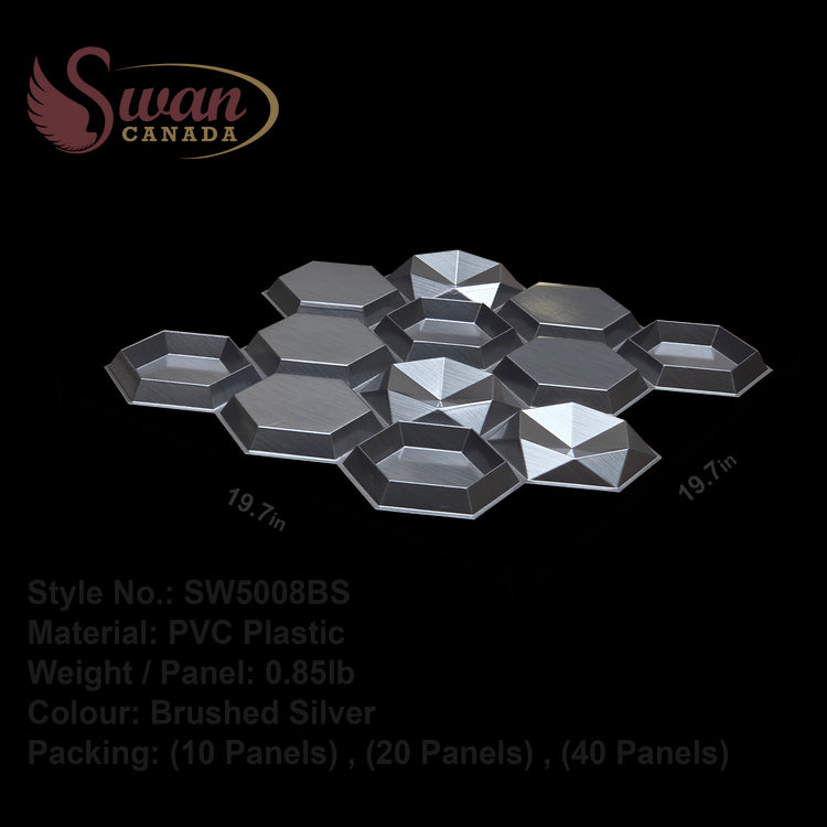 3D Wall Panels, Brushed Silver, 19.7" x 19.7"
