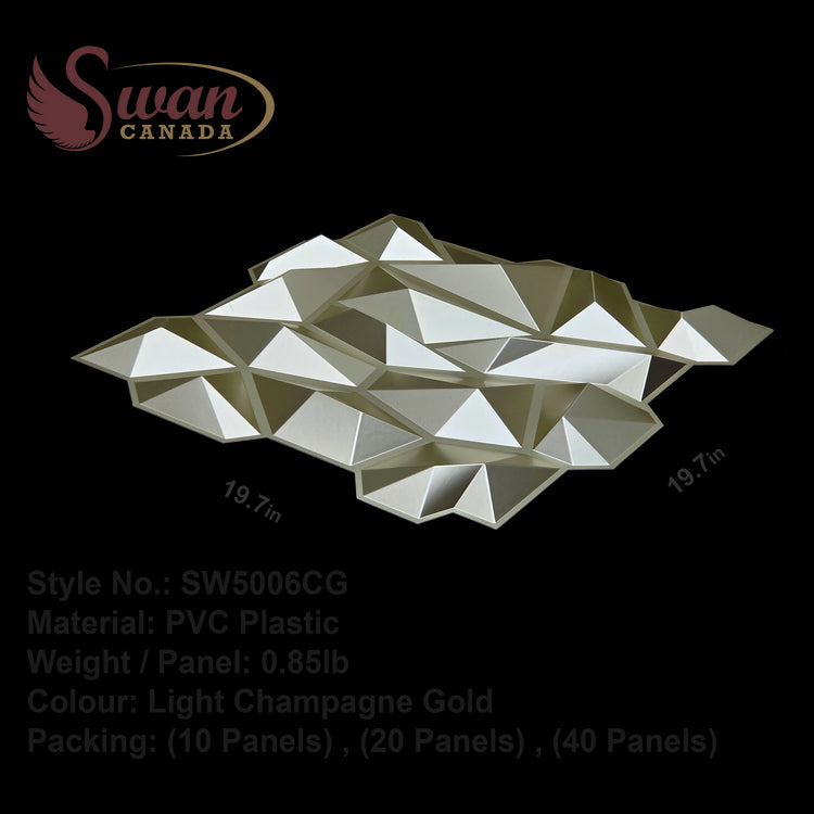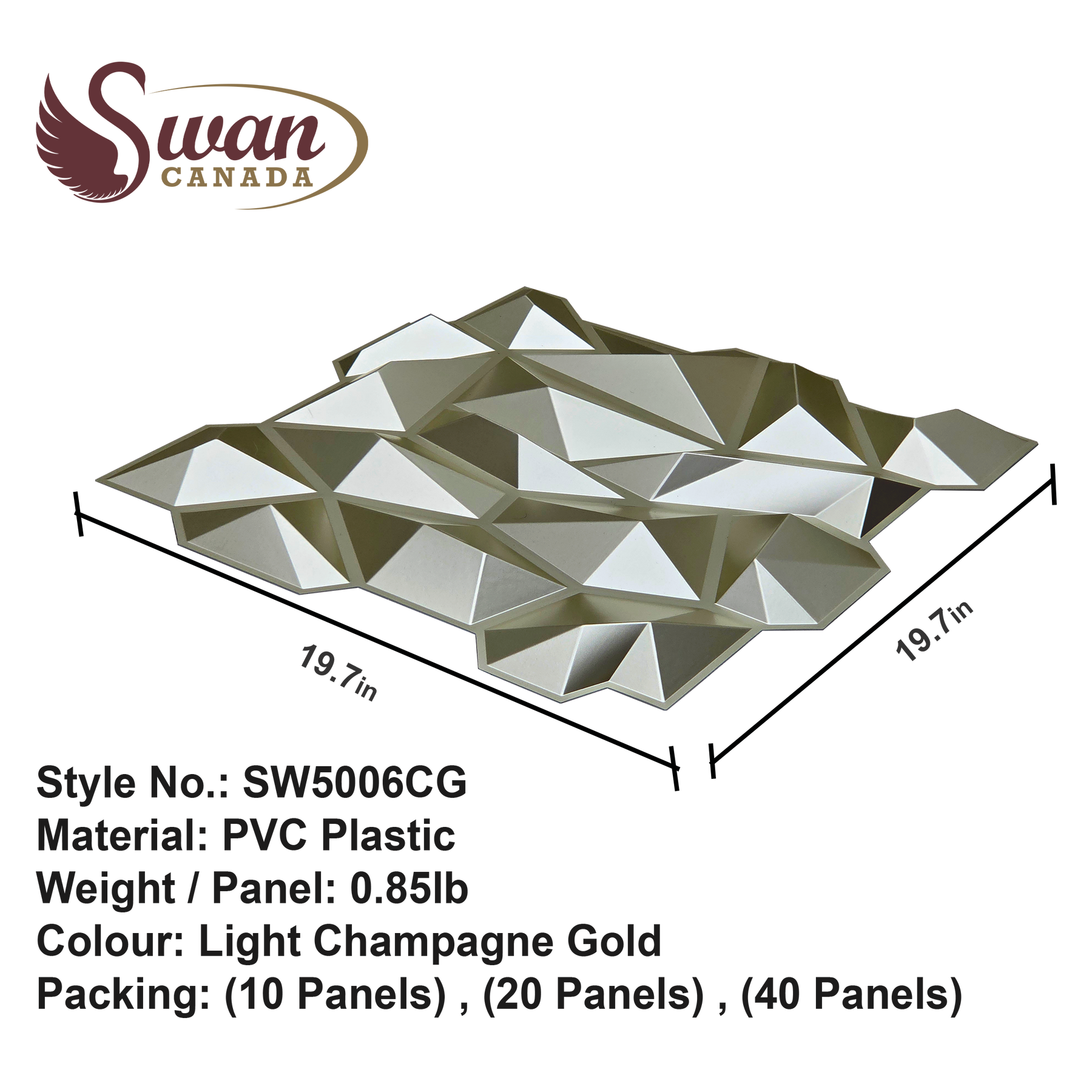 3D Wall Panels, Light Champagne Gold, 19.7" x 19.7"