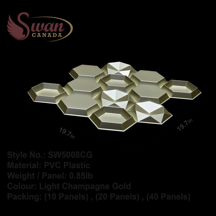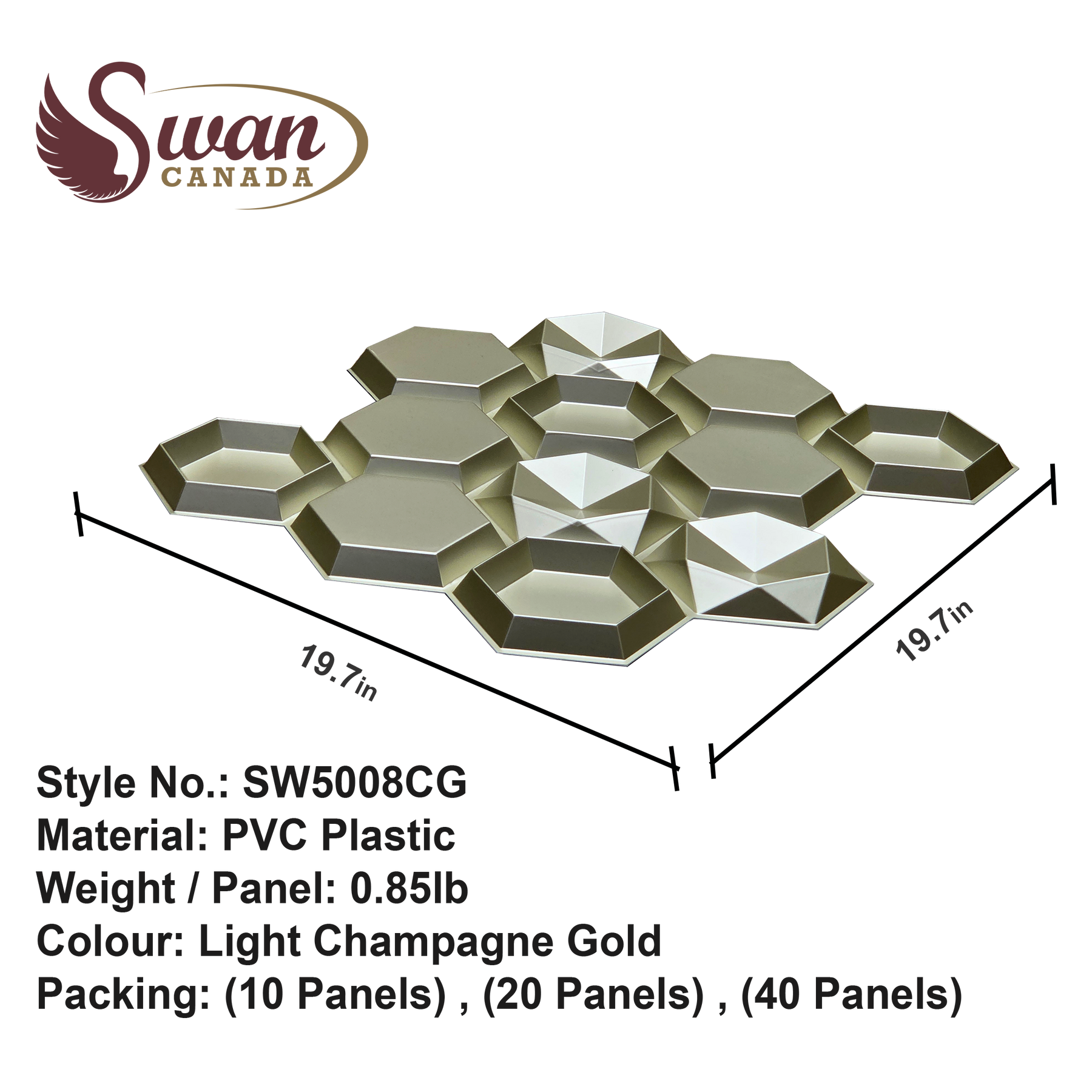 3D Wall Panels, Light Champagne Gold, 19.7" x 19.7"