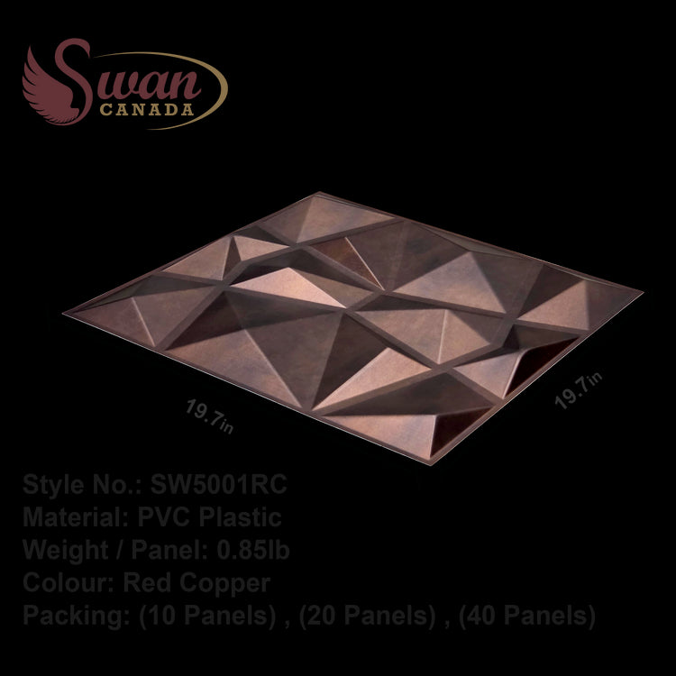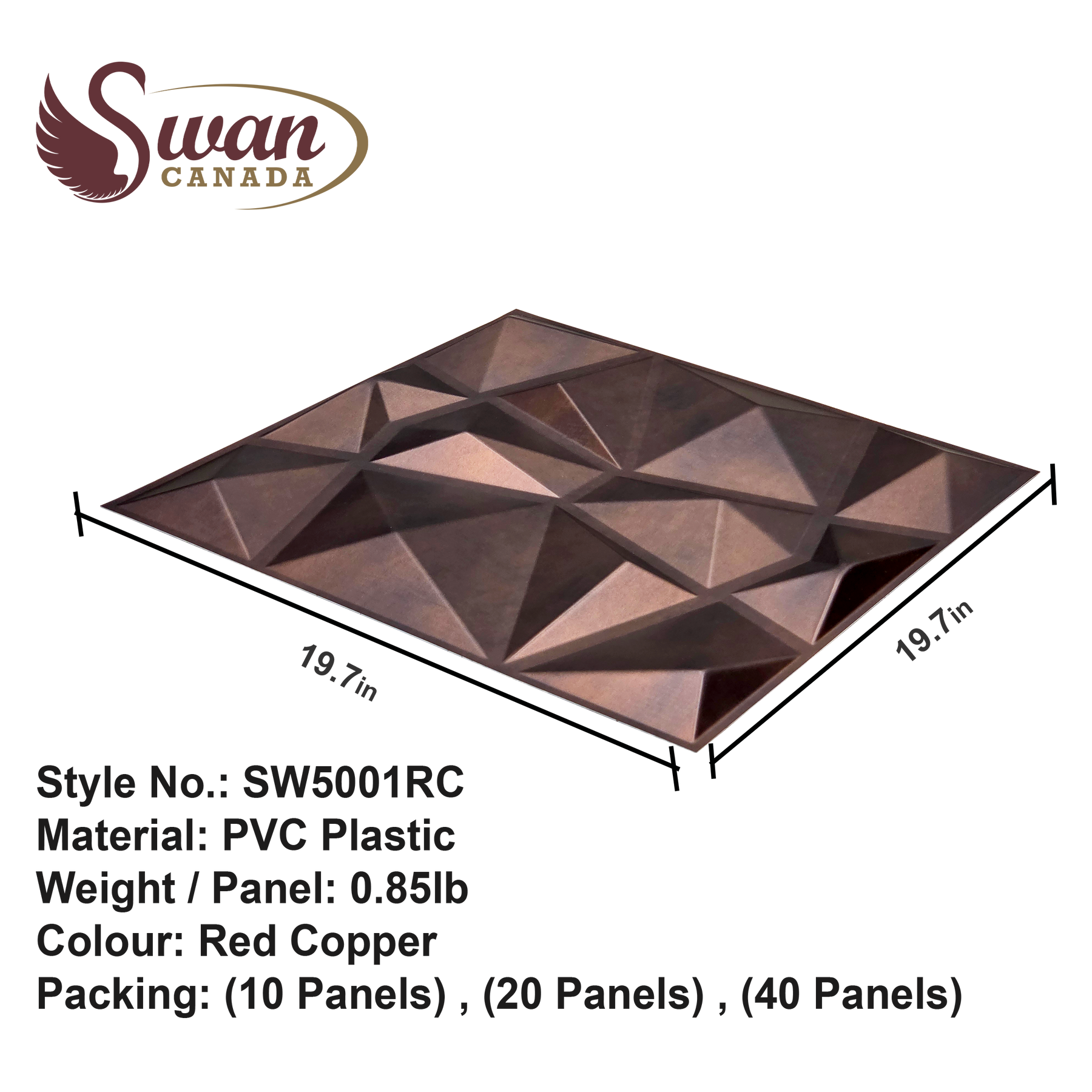 3D Wall Panels, Red Copper, 19.7" x 19.7"