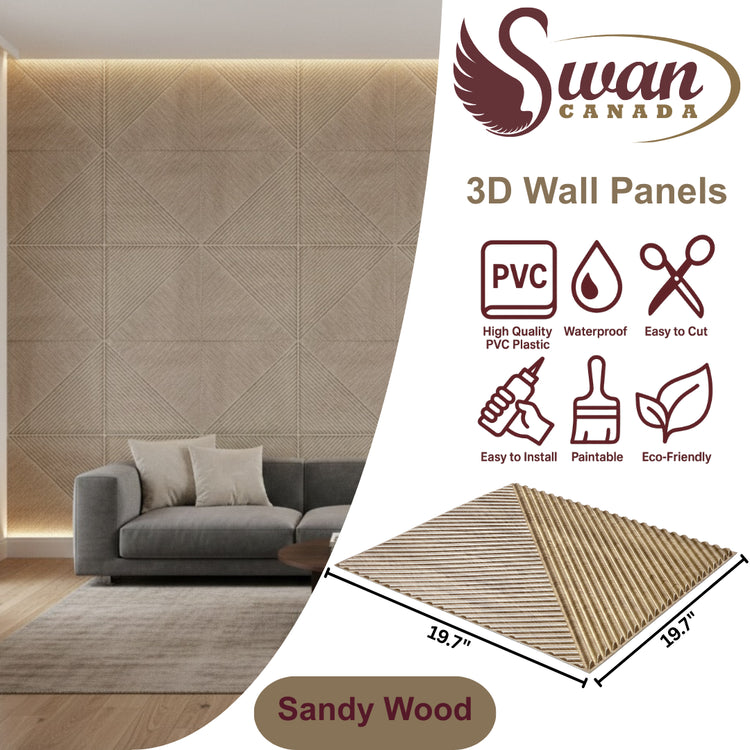 3D Wall Panels, Sandy Wood, 19.7" x 19.7"