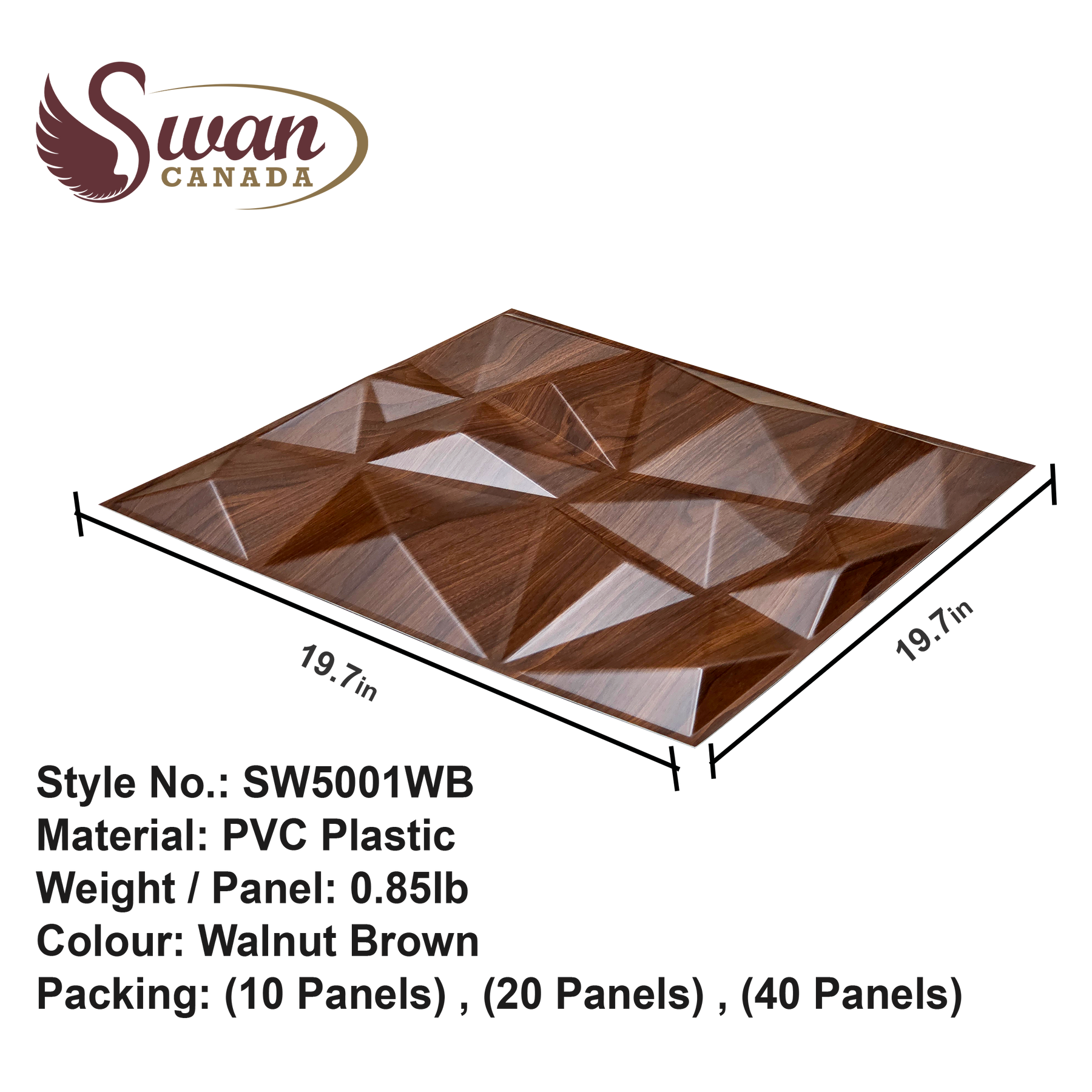 3D Wall Panels, Walnut Brown, 19.7" x 19.7"