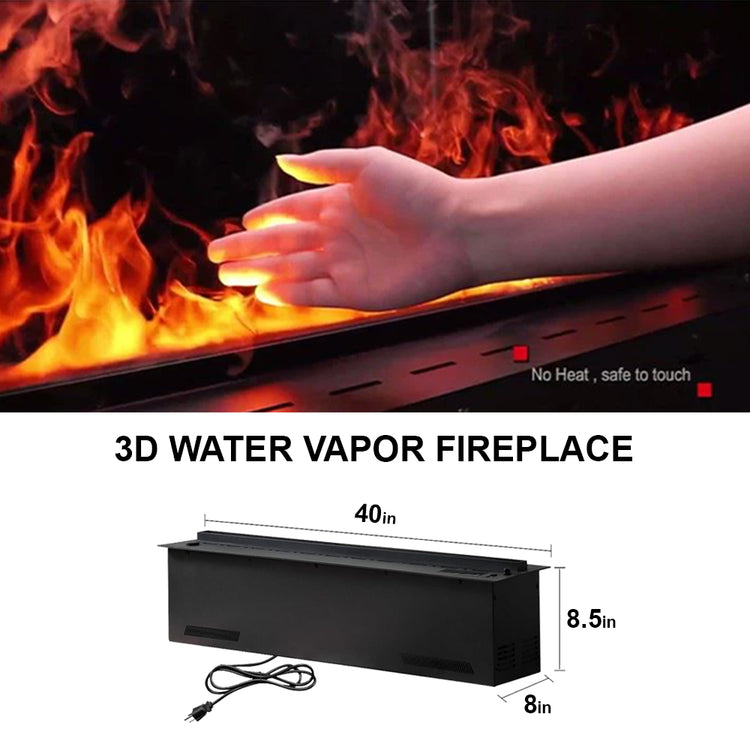 Swan 3D electric water vapor fireplace is a marvel of modern design. With its realistic, cold flames made from finely dispersed water vapor and LED lighting, it’s hard to believe they aren't real fire. These flames are fully interactive—you can adjust their speed, height, and color, and even run your fingers through them without any risk. With a remote control or a smartphone app, you can effortlessly change the flame colors to red, blue, green, and more, crafting an ambiance that's as playful as it is safe. Swan's built-in water vapor fireplace insert is eco-friendly and environmentally respectful, creating neither humidity nor condensation, perfect for any setting. It’s real looking fire that offers the unique experience of color-changing flames, creating a magical ambience