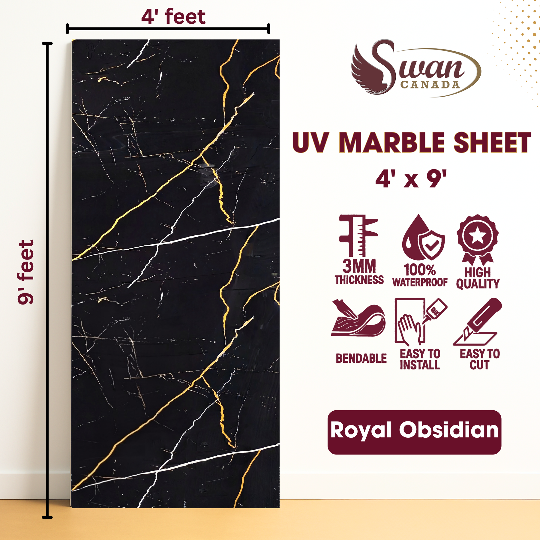 UV Marble Sheets, Royal Obsidian, 1 Sheet, 4 X 9 Feet
